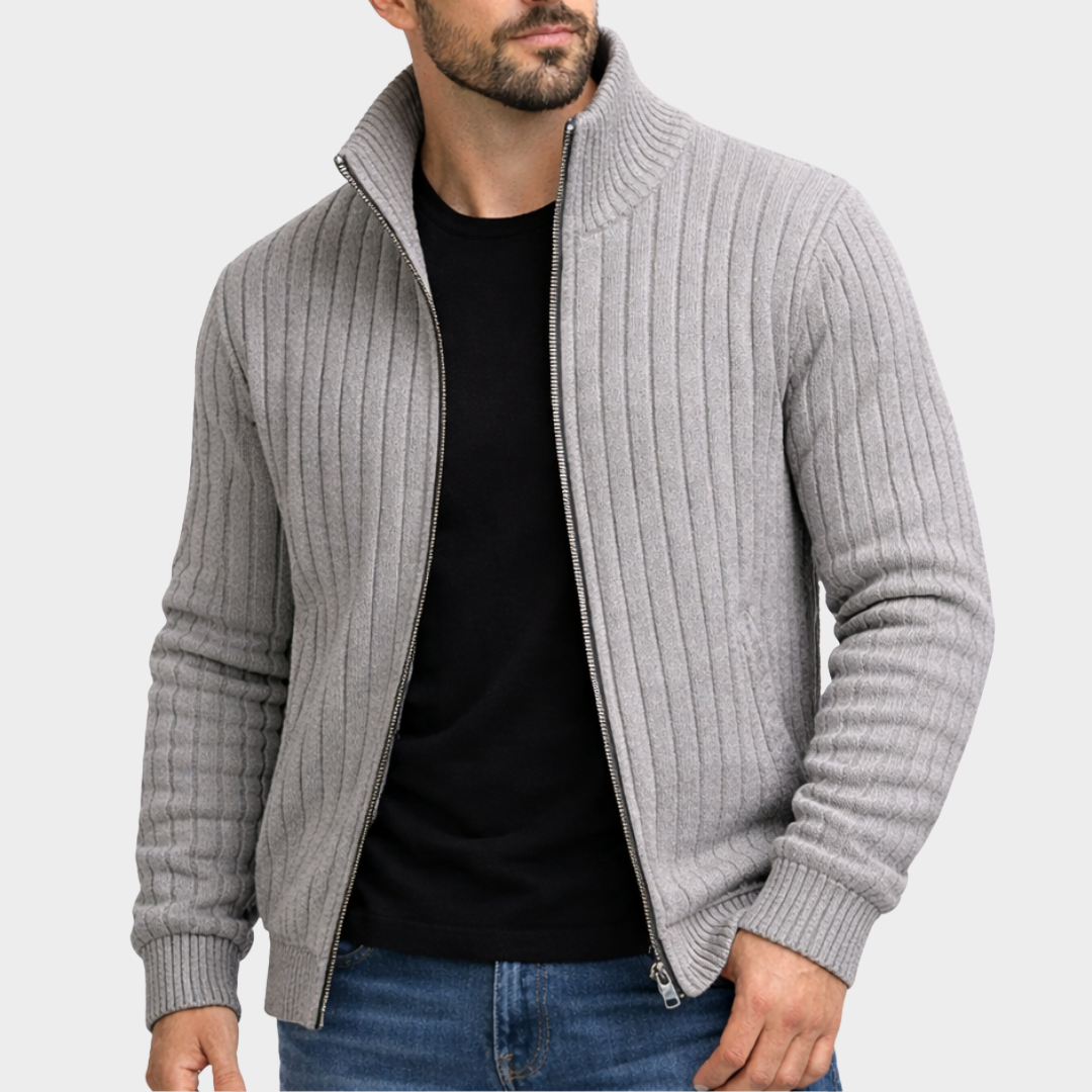Agostino - Cardigan con zip in misto lana a coste