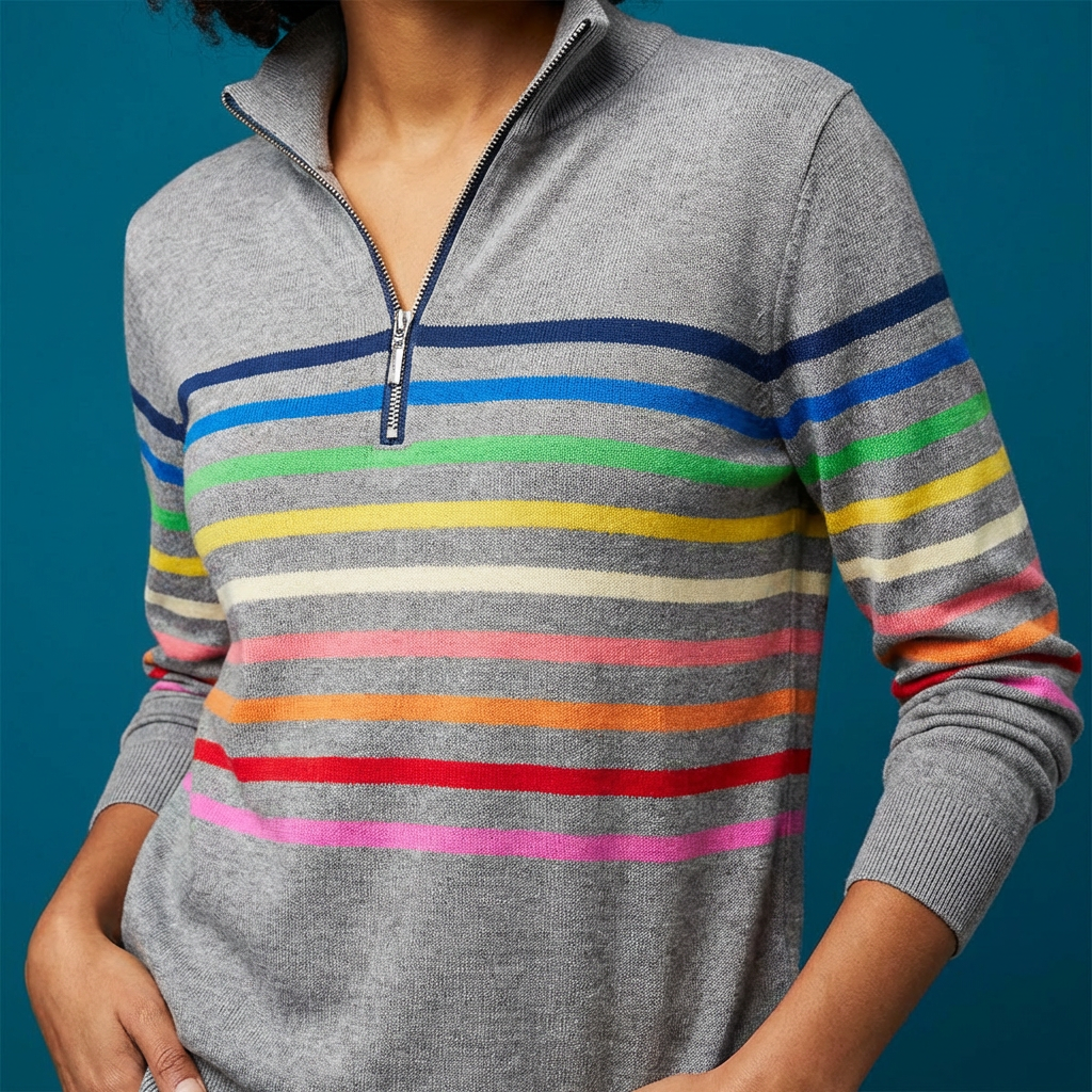 Arabella - Maglione con collo a zip a righe
