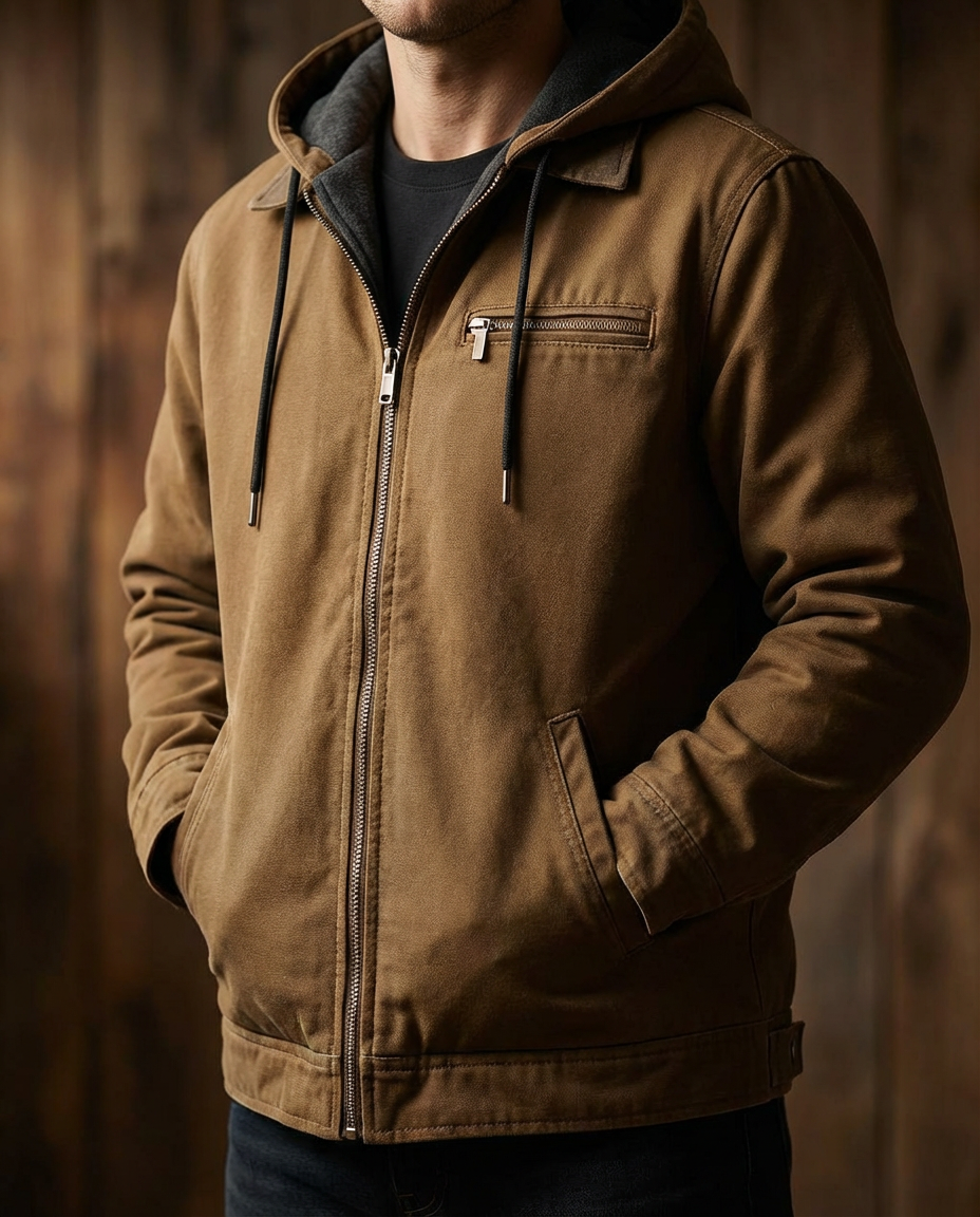 Aldwych - Giacca in Tela Robusta con Cappuccio Foderata in Pile